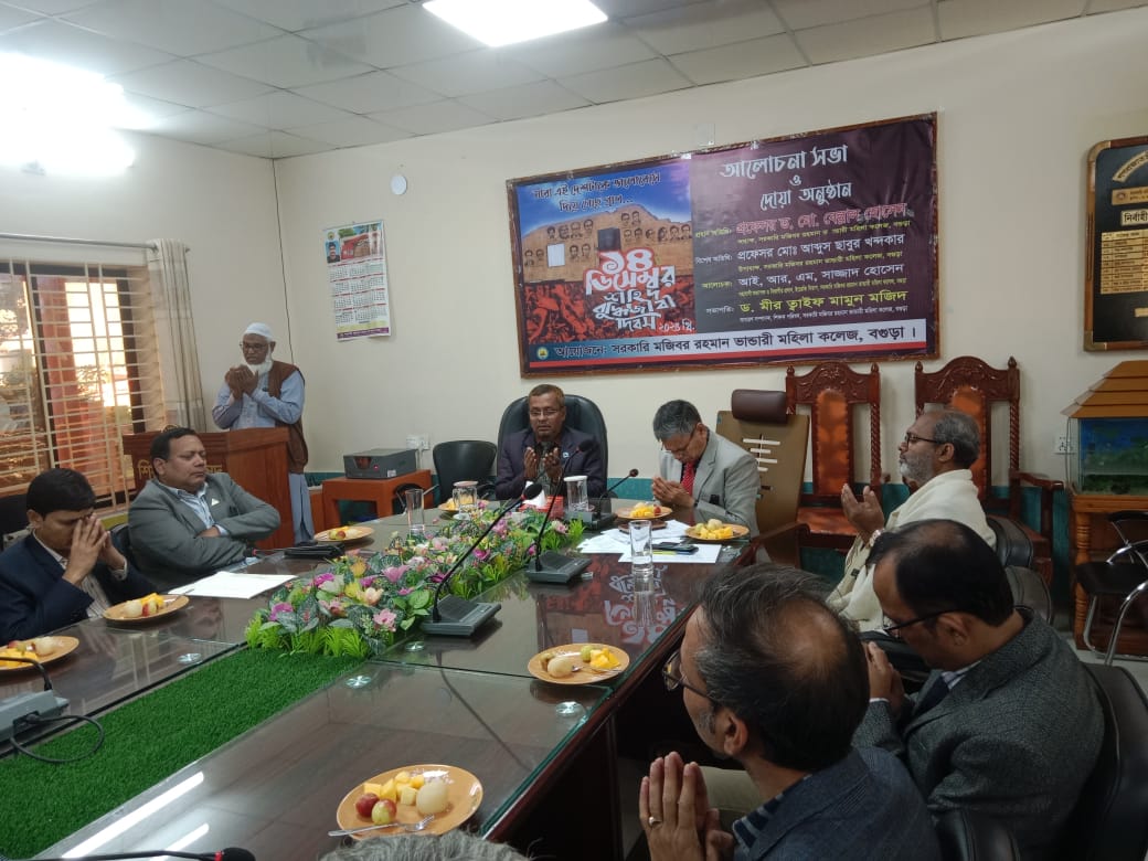 প্রধান অতিথি: প্রফেসর ড. মো. বেল্লাল হোসেন,অধ্যক্ষ, সরকারি মজিবর রহমান ভান্ডারী মহিলা কলেজ,বগুড়া, বিশেষ অতিথি :প্রফেসর মো:আব্দুস ছাবুর খন্দকার, উপাধ্যক্ষ, আলোচক : জনাব,আই,আর,এম, সাজ্জাদ হোসেন, সহযোগী অধ্যাপক ও বিভাগীয় প্রধান ইংরেজি। সভাপতি : জনাব ড.মীর ত্বাইফ মামুন মজিদ, সহযোগী অধ্যাপক, বাংলা, ও সম্পাদক, শিক্ষক পরিষদ, সভাপতি :জনাব আই,আর,এম,সাজ্জাদ হোসেন, সহযোগী অধ্যাপক ও বিভাগীয় প্রধান, ইংরেজি।